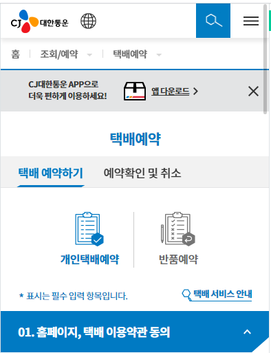 Cj 대한통운 택배예약 반품예약 방법 모바일 앱으로 쉽고 편리하게